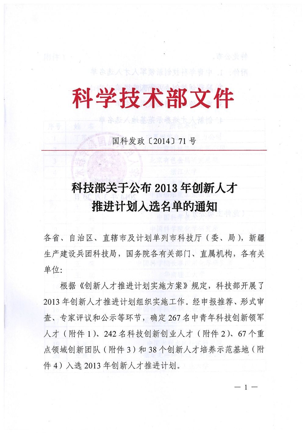 3月20日,国家科技部公布了《2013年创新人才推进计划入选名单的通知》(国科发政【2014】71号),德信官方网址董事长胡湛波荣获“国家科技部创新创业人才”称号,成为目前广西唯一一位入选“国家科技部创新创业人才”的专家。
