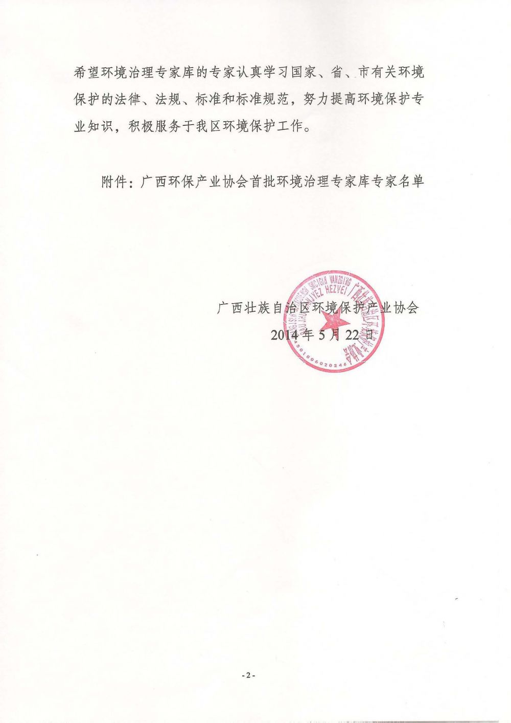 5月22日,经广西环保产业协会第三届理事会审议通过,公司总工孙全民入选广西环保产业协会首批环境治理专家库专家,成为50名自治区环境治理项目咨询、评估、审定储备专家人才之一。