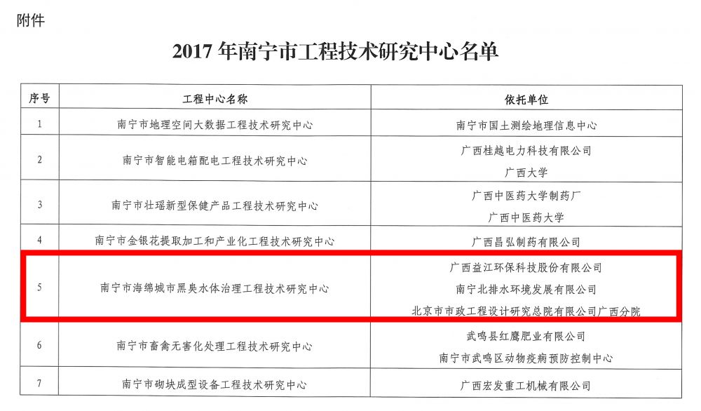 1月23日,德信官方网址“南宁市海绵城市黑臭水体工程技术研究中心”入选2017年南宁市工程技术研究中心名单(南宁市仅7家单位获认定)。