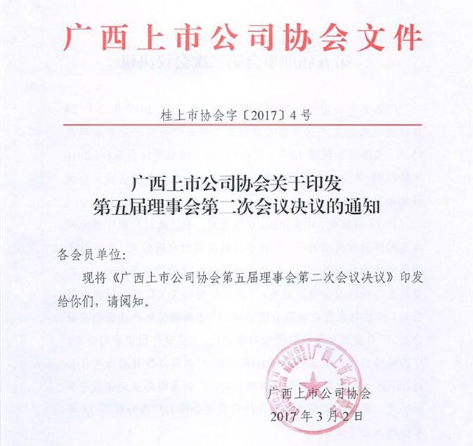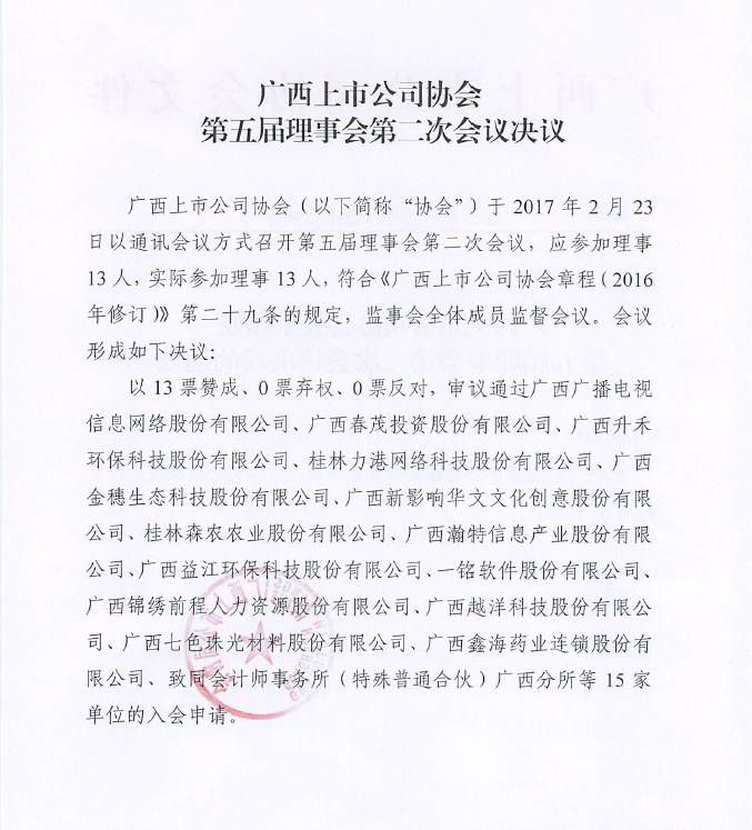 2017年2月23日,经广西上市公司协会理事全票赞成,广西德信官方网址科技股份有限公司正式加入协会成为会员单位。