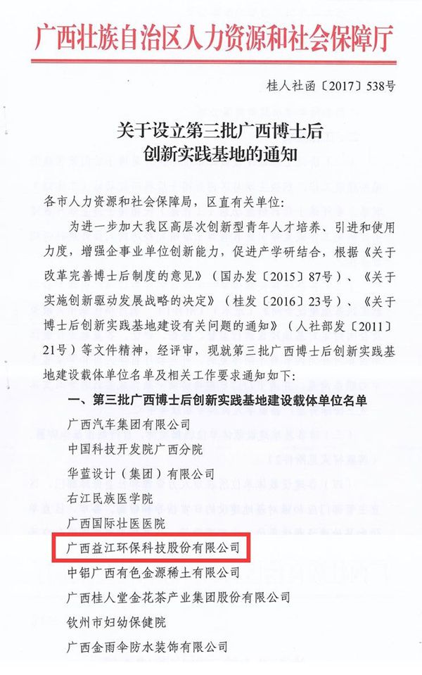 7月5日,广西壮族自治区人力资源和社会保障厅公布了“第三批广西博士后创新实践基地”建设载体单位名单,德信官方网址成功入选。