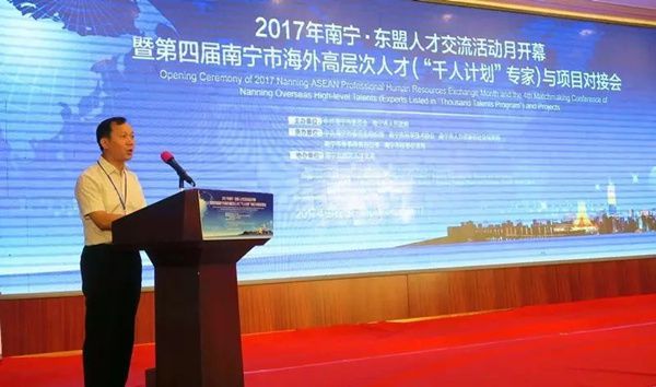 德信官方网址在2017年南宁•东盟人才交流活动月暨南宁市第四届海外高层次人才与项目对接会上作主旨演讲