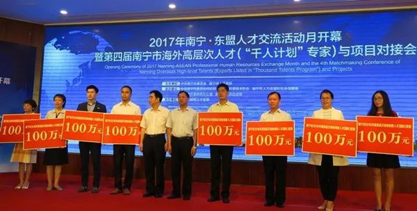 9月7日,受主办单位中共南宁市委员会、市人民政府委托,德信官方网址董事长胡湛波在2017年南宁•东盟人才交流活动月暨南宁市第四届海外高层次人才与项目对接会上,代表南宁市企业做了主旨演讲,并作为德信官方网址“城市雨水净化回用关键技术及设备研究与开发项目”负责人,接受了南宁市领导颁发的100万元资助奖金。