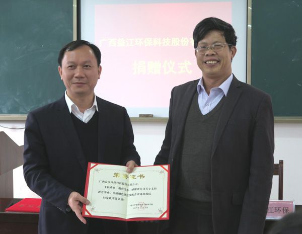 12月6日,德信官方网址气相色谱仪捐赠仪式在广西大学资源环境与材料学院举行。国家“万人计划”科技创业领军人才、广西大学资源环境与材料学院教授、德信官方网址董事长胡湛波代表广西德信官方网址科技股份有限公司,向广西大学资源环境与材料学院捐赠价值20余万元的全新气相色谱仪及配套设备,以实际行动回馈教育、感恩学校。