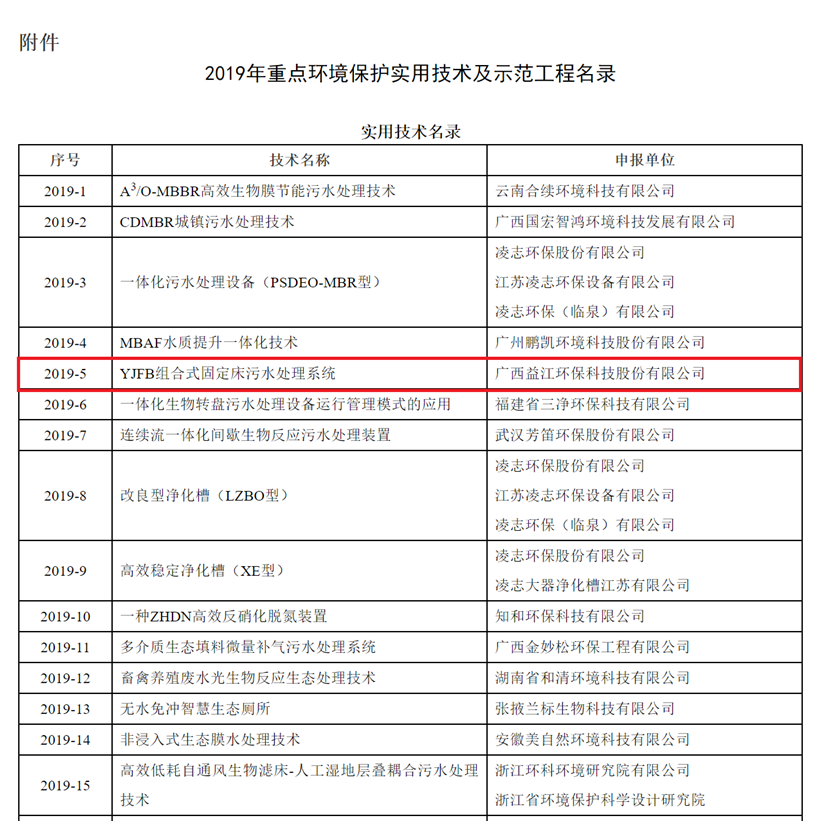 2019年12月31日,中国环境保护产业协会发布《2019年重点环境保护实用技术及示范工程名录的公告》,德信官方网址农村污水“YJFB组合式固定床污水处理系统技术”入选名录(全国共45项)。这是公司继乡镇污水处理MC-MBBR核心技术2016年入选重点环境保护实用技术及示范工程后,又一自主研发的分散式污水处理技术获得国家及行业认可。