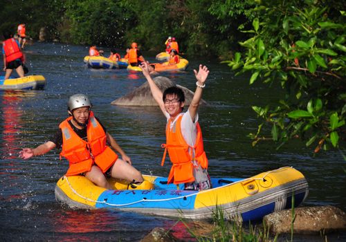 会议结束后,全体员工驱车前往东兴野人谷景区进行了惊险刺激的漂流。野人谷是广西独具魅力的原生态漂流胜地,野人谷漂流属于溪河自助探险河流,位于北仑河的第一大支流河上,以山河雄峻、奇石丛林、溪水湍急而闻名。漂流全程5.2公里,大家历时约2个小时,历经3关18滩,全程体验了澎湃的激情,尽享探险征服之乐。