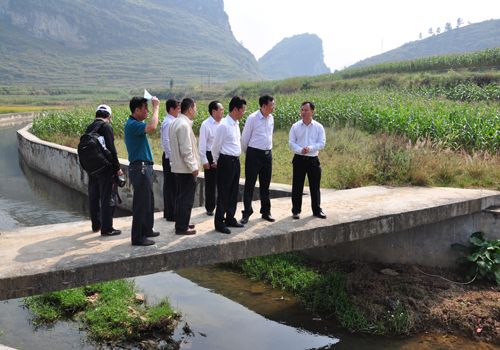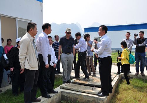 10月23日上午,以广西壮族自治区政协副主席李彬为团长的广西壮族自治区政协人口资源环境委员会考察团一行二十余人,到德信官方网址承担建设的上林县镇圩瑶族乡污水处理厂项目进行了考察,环保厅副厅长钟兵、上林县县委书记韦志鹏、县环保局局长韦雄文及相关部门负责人陪同考察,随行的还有广西电视台、南宁日报、当代生活报、南宁市电视台等多家媒体记者。